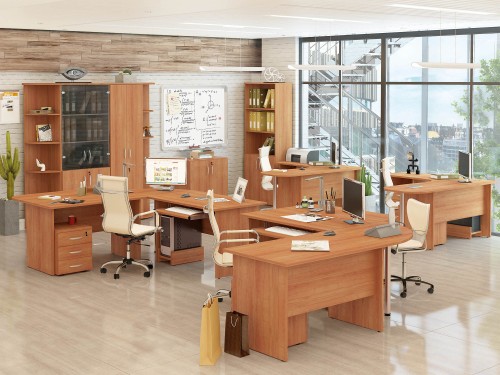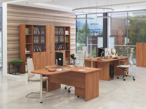 Набор мебели для персонала «Альфа 61» поможет профессионально организовать рабочее пространство в офисе. Замки на тумбах и шкафах обеспечивают безопасное хранение вещей. Демпферы обеспечивают мягкое закрывание дверей. Регулируемые по высоте ножки компенсируют возможные неровности пола. Металлические ручки подчеркивают современный дизайн модулей.